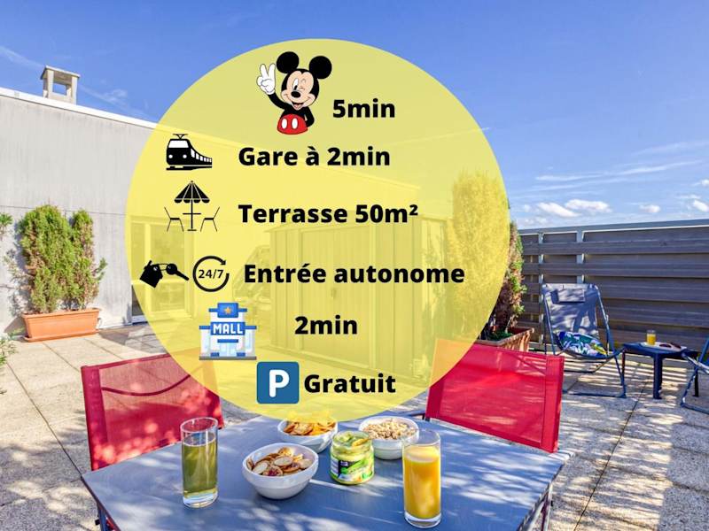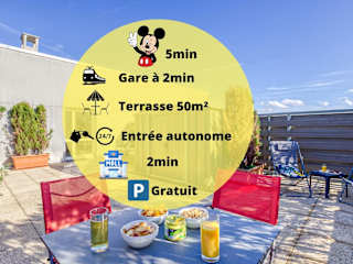Die Unterkunft befindet sich in Montévrain, nur 600 m von der Val d'Europe RER Station entfernt. Disneyland Paris ist 4,3 km entfernt, und der Bahnhof Paris Gare de Lyon liegt 35 km entfernt. Der Flughafen Paris-Charles-de-Gaulle ist 26 km entfernt.
