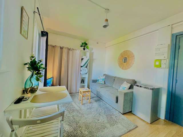 Die Ferienwohnung ist mit einem Schlafzimmer, einer Küchenzeile mit Kühlschrank und Mikrowelle, einem Flachbild-TV und einem Sitzbereich ausgestattet. Das Badezimmer verfügt über eine Dusche, und Handtücher sowie Bettwäsche werden bereitgestellt.