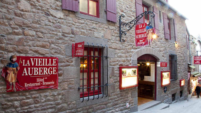 Das La Vieille Auberge befindet sich im malerischen Dorf Le Mont-Saint-Michel, nur wenige Schritte von der berühmten Abtei Mont-Saint-Michel entfernt. Die Lage des Hotels bietet einen atemberaubenden Blick auf die Bucht von Mont Saint-Michel und ist der ideale Ausgangspunkt, um die historische Umgebung zu erkunden. Avranches, Cancale und Dol-de-Bretagne sind ebenfalls einen Besuch wert und leicht mit dem Auto erreichbar.