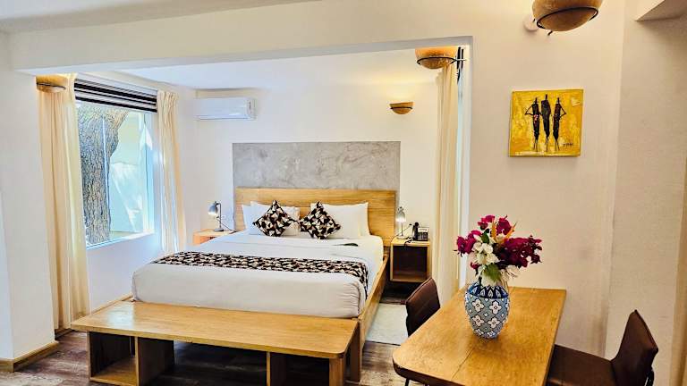 Die klimatisierten Unterkünfte sind modern eingerichtet und verfügen über ein eigenes Bad. Einige Räume bieten zudem einen privaten Balkon mit Aussicht.