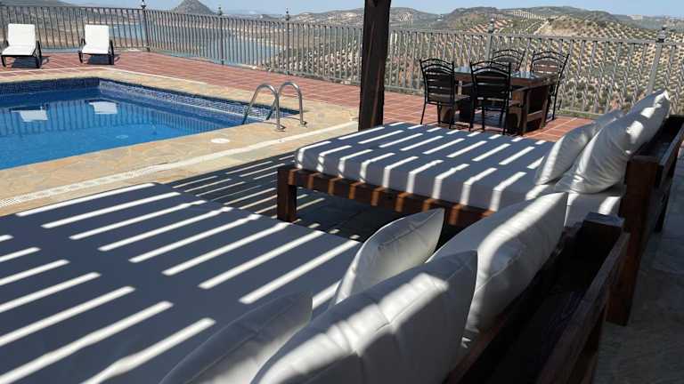 Die Unterkunft La Villa del Lago befindet sich in Iznájar mit schönem Blick auf den See und die umliegenden Berge.