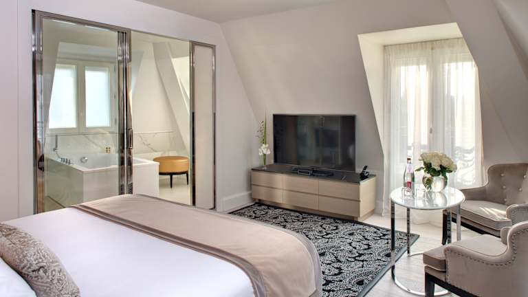 Die Zimmer verfügen über eine Klimaanlage, einen Balkon oder eine Terrasse, sowie ein Doppelbett oder Kingsize-Bett. Zur Standardausstattung gehören ein Safe, eine Minibar, ein Schreibtisch, eine Tee- und Kaffeemaschine, ein Telefon, Sat-TV und kostenloses WiFi. Die Badezimmer sind mit einer Dusche und einer Badewanne ausgestattet und bieten Bademäntel, Hausschuhe und Kosmetikartikel. Rolstuhlaccessible Zimmer mit barrierefreiem Badezimmer sind ebenfalls verfügbar.