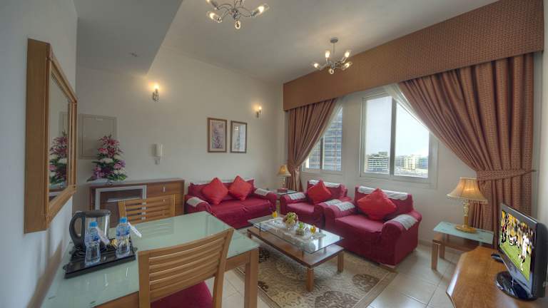 Die Najd Hotel Apartments bieten insgesamt 64 Zimmer auf 2 Etagen, die mit einem Aufzug erreichbar sind. Das Hotel stellte sicher, dass alle Bedürfnisse der Gäste berücksichtigt werden, und die Einrichtung umfasst eine Garderobe, einen Safe sowie einen Wechselstube. WLAN steht in den öffentlichen Bereichen kostenlos zur Verfügung. Es gibt eine 24-Stunden-Rezeption, einen Minimarkt sowie behindertengerechte Einrichtungen. Zu den Annehmlichkeiten gehören auch ein Zimmerservice und ein medizinischer Service. Zur Sicherheit der Gäste wird ein Wäschereiservice angeboten und auch eine Autovermietung steht zur Verfügung.