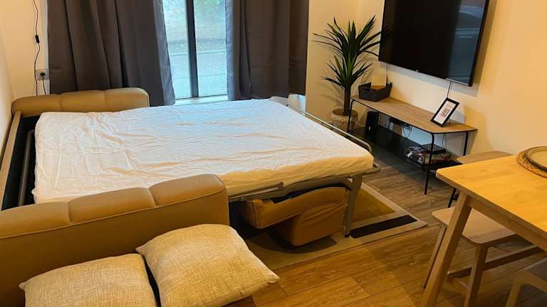 Die Ferienwohnung besteht aus einem Schlafzimmer und einem Wohnzimmer. Eine voll ausgestattete Küche mit Kühlschrank und Kaffeemaschine steht zur Verfügung. Ein Badezimmer mit Dusche und kostenlosen Pflegeprodukten gehört ebenfalls zur Ausstattung. Handtücher und Bettwäsche werden bereitgestellt. Es ist ein Flachbild-TV vorhanden und kostenfreies Wifi ermöglicht einfaches Surfen im Internet.