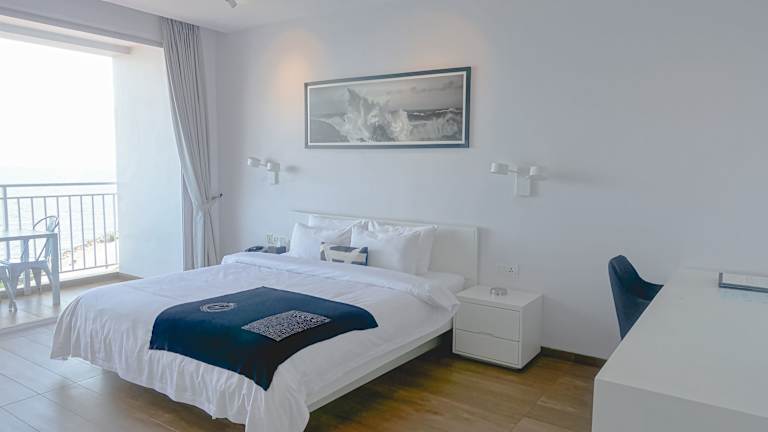 Die klimatisierten Zimmer verfügen über ein eigenes Badezimmer mit Bidet, einen Schreibtisch, einen Wasserkocher, einen Kühlschrank, einen Safe, einen Flachbild-TV und eine Terrasse. Bettwäsche und Handtücher sind vorhanden.