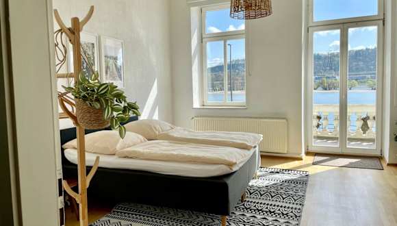 LaBed - Wohnen direkt an der Drosselgasse ist eine stilvolle Ferienwohnung mit Rheinblick, gelegen an der Drosselgasse. Diese Unterkunft bietet die Bequemlichkeit eines Privatzimmers und ist eine Nichtraucherunterkunft. Junggesellenabschiede oder ähnliche Feiern sind untersagt, und Haustiere sind nicht gestattet. Der Check-in ist ab 16:00 Uhr und bis 23:00 Uhr möglich, während der Check-out zwischen 06:00 und 10:00 Uhr stattfindet.