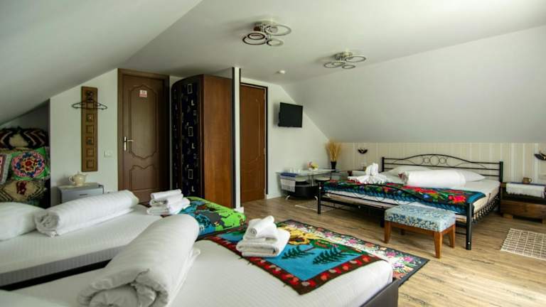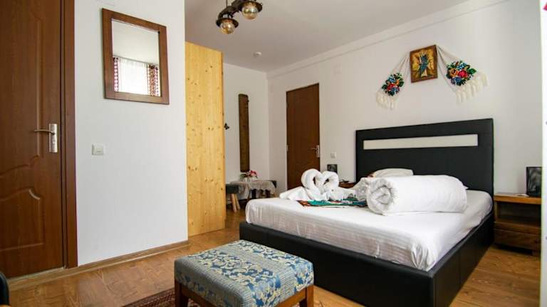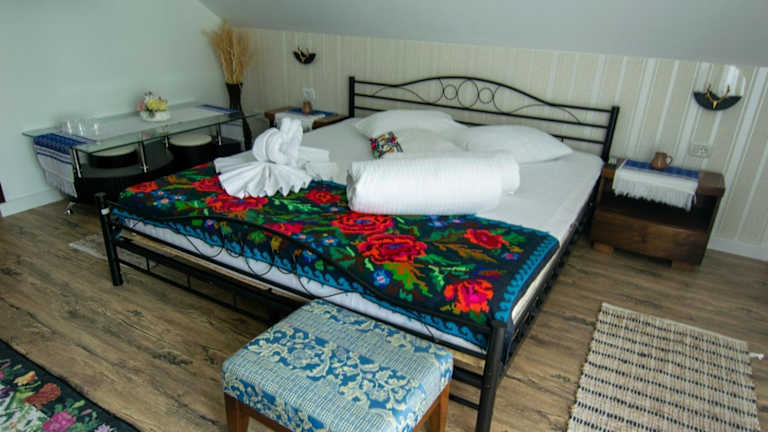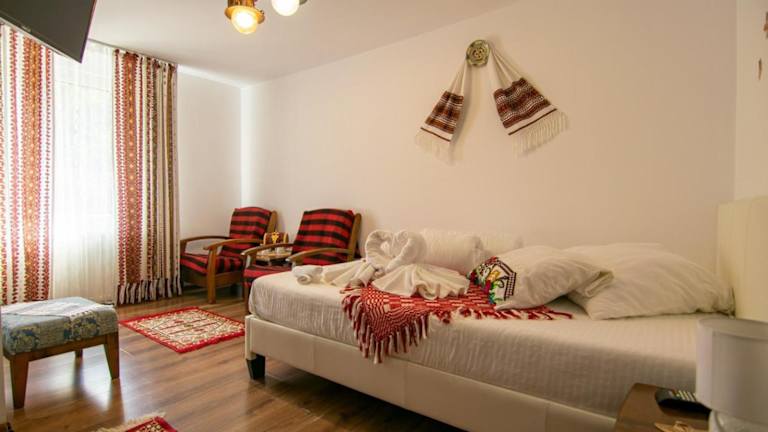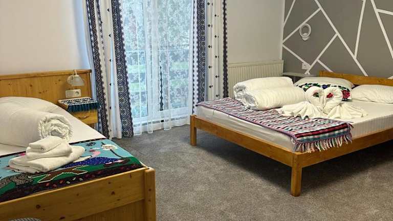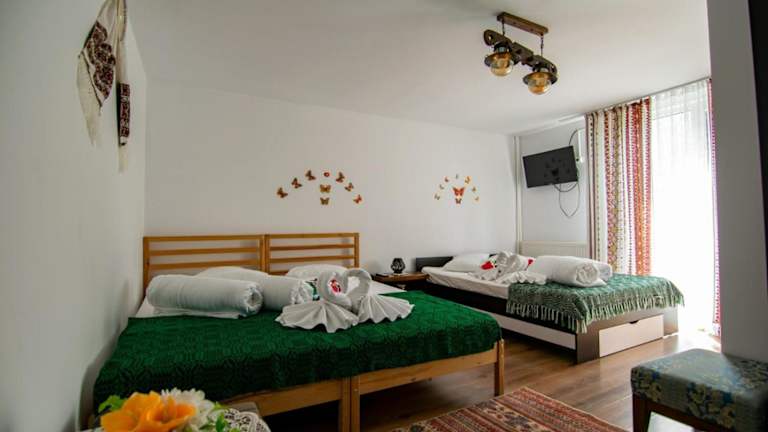 Erleben Sie einen entspannten Aufenthalt im Lacrima Izei in Săcel, Maramureş. Das Hotel bietet komfortable Unterkünfte mit kostenfreiem WLAN und erstklassigem Service. Genießen Sie die Ruhe und die schöne Umgebung, während Sie die verschiedenen Annehmlichkeiten wie den Kinderspielplatz, die Sauna und den Grill nutzen. Das kontinentale Frühstück wird jeden Morgen auf dem Bauernhof serviert und bietet eine perfekte Grundlage für einen aktiven Tag beim Wandern, Skifahren oder Angeln.