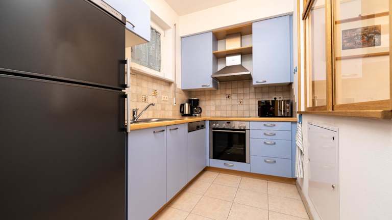 Die Ferienwohnung umfasst 1 Schlafzimmer, ein Wohnzimmer, eine voll ausgestattete Küche mit Kühlschrank und Kaffeemaschine sowie ein Badezimmer mit Bidet und kostenlosen Pflegeprodukten. Handtücher und Bettwäsche werden zur Verfügung gestellt.