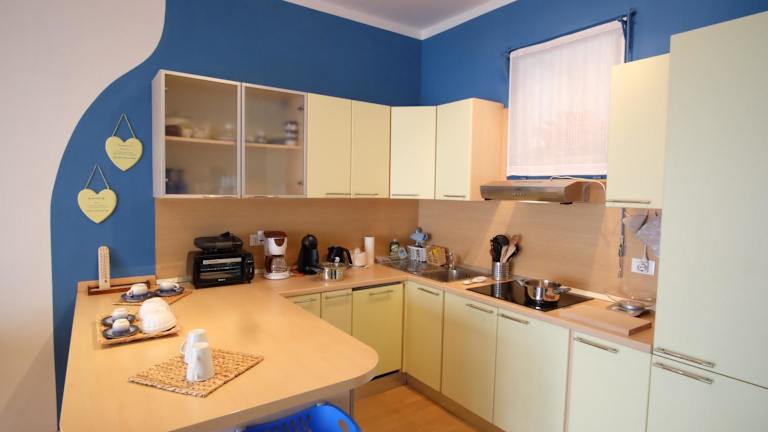 Die Ferienwohnung besteht aus einem Schlafzimmer und einem Wohnzimmer. Die voll ausgestattete Küchenzeile verfügt über einen Kühlschrank und eine Kaffeemaschine. Das Badezimmer ist mit einem Bidet und einer Dusche ausgestattet. Auf Wunsch können Handtücher und Bettwäsche gegen Aufpreis zur Verfügung gestellt werden.