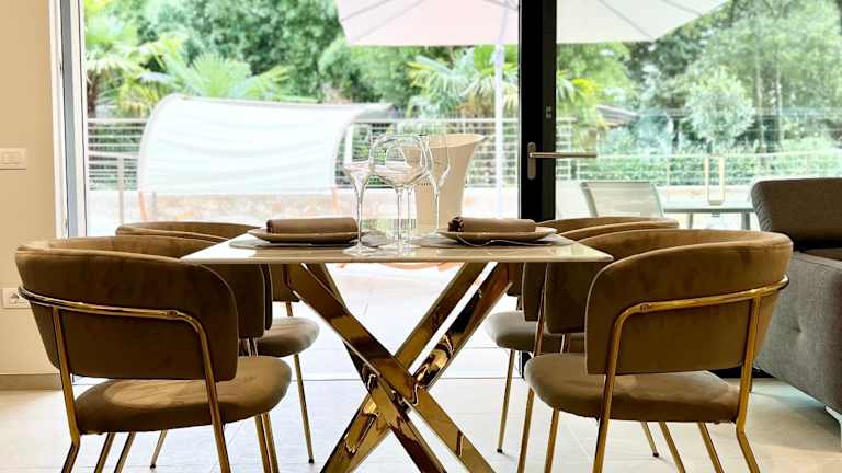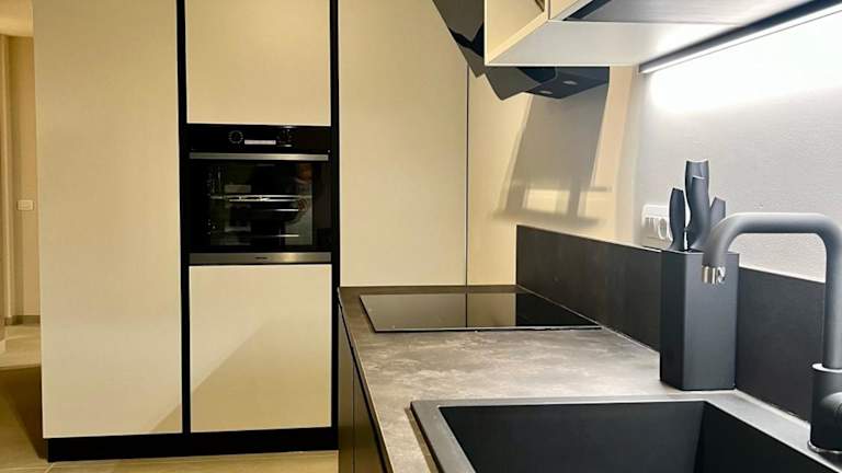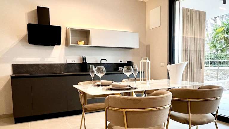 Die Ferienwohnung verfügt über ein Schlafzimmer, ein Wohnzimmer sowie eine voll ausgestattete Küche mit Kühlschrank und Kaffeemaschine. Zudem beinhaltet sie ein Badezimmer mit Bidet und Dusche. Handtücher und Bettwäsche werden bereitgestellt.