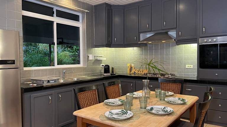 Das Ferienhaus hat 3 Schlafzimmer, ein Wohnzimmer, eine voll ausgestattete Küche mit Kühlschrank und Kaffeemaschine sowie 2 Badezimmer mit Dusche. Handtücher und Bettwäsche werden bereitgestellt. Klimaanlage ist vorhanden.