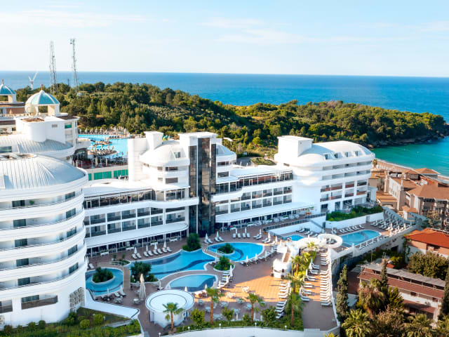 Mit einer Kapazität von 400 Personen im Innenbereich und 200 Personen im Aussenbereich, bietet unser Hauptrestaurant, türkische und internationale Küche in Buffetform, an. Wir haben 2 speziell dekorierte A la Carte Restaurants in denen die traditionellen osmanischen Gerichte oder italienische Gerichte, in Menüform, serviert werden. Desweiteren gibt es eine Lobby Bar, Pool Bar und eine Beach Bar an denen wir unseren Gästen, in der heißen Sommersonne, erfrischende Cocktails, anbieten. Während Sie Ihren Kaffee in unserer Patisserie mit Blick auf die Bucht trinken, können Sie die Sonnenuntergänge des MIttelmeeres geniessen und Ihre Seele baumeln lassen.