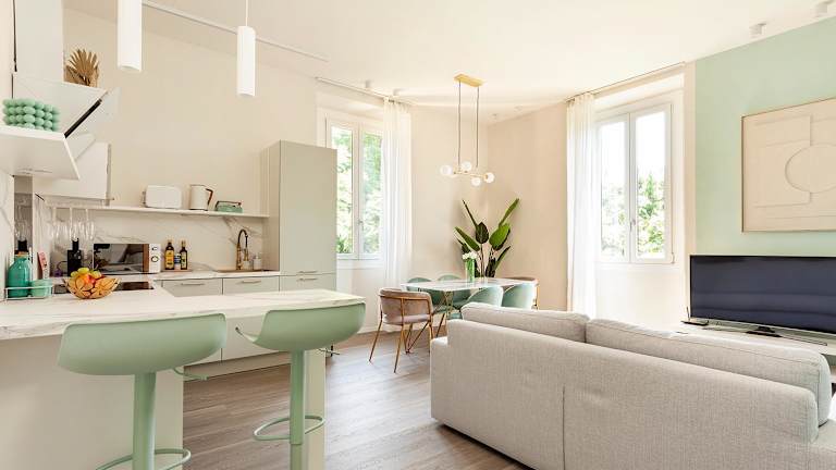 Die Ferienwohnung ist klimatisiert und besteht aus 2 Schlafzimmern und einem Wohnzimmer. Eine voll ausgestattete Küche mit Kühlschrank ist vorhanden, sowie 2 Badezimmer mit Bidet und Haartrockner. Handtücher und Bettwäsche werden zur Verfügung gestellt.