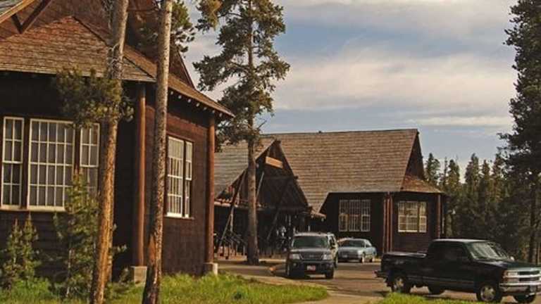 Die Hütten des Hotels liegen etwa 400 m hinter dem historischen Yellowstone Hotel und dem Lake Yellowstone. Die Umgebung ist geprägt von schimmernden Bergen und einem See, ideal für Naturliebhaber.