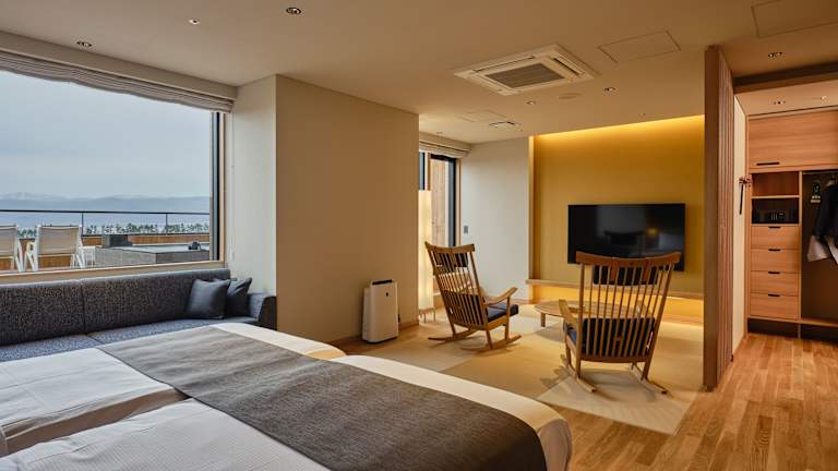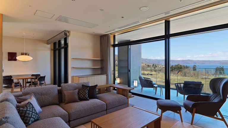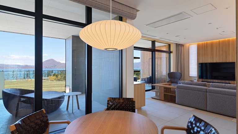 Die Unterkunft befindet sich in der Nähe des Tōya-Sees, etwa 3,8 km vom See entfernt. Die Umgebung bietet verschiedene Ausflugsziele wie den Kitakogane Kaizuka Historic Park in 21 km und den Murorandake Sanroku Comprehensive Park in 33 km Entfernung. Die nächstgelegene Bahnhöfe sind etwa 36 km von Bahnhof Muroran, 37 km von Bahnhof Higashi-muroran und 13 km von Bahnhof Usu. Der Flughafen Neu-Chitose ist 109 km entfernt.