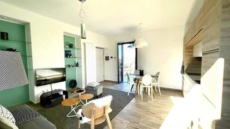 Lake View Apartment in Arona bietet Übernachtungsmöglichkeiten mit Blick auf den See. Die Unterkunft inklusive Balkon, einem Schlafzimmer, einem Wohnzimmer sowie einer gut ausgestatteten Küche mit Kühlschrank und Geschirrspüler ist ideal für entspannte Ferien.