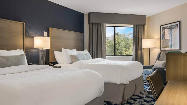 Die Zimmer sind mit Klimaanlage und Heizung ausgestattet und bieten einen Balkon oder eine Terrasse mit Seeblick. Jedes Zimmer umfasst ein Kingsizebett und ein Sofabett, mit der Möglichkeit, Zustellbetten anzufordern. Weitere Annehmlichkeiten sind ein Safe, ein Schreibtisch, ein Kühlschrank, eine Mikrowelle sowie eine Tee- und Kaffeemaschine. Auch ein Bügelset, Kabel-TV und kostenfreies Wifi stehen zur Verfügung. Die Badezimmer sind mit Duschen, Haartrockner und Kosmetikartikeln ausgestattet. Es gibt rollstuhlgerechte Zimmer sowie Familienzimmer.