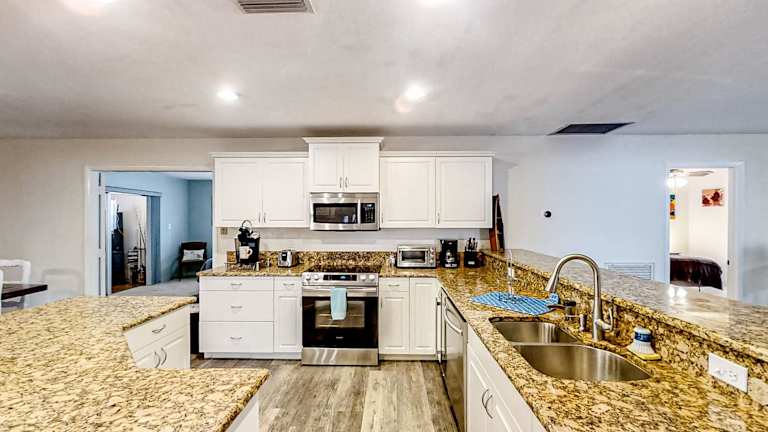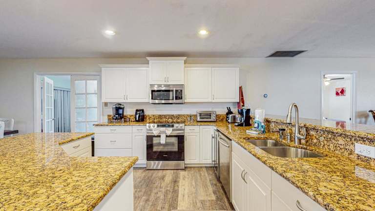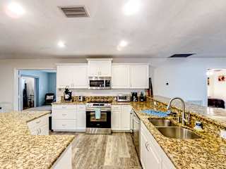 Das Ferienhaus verfügt über 3 Schlafzimmer, ein Wohnzimmer und eine voll ausgestattete Küche mit Kühlschrank und Kaffeemaschine. Des Weiteren sind 3 Badezimmer mit Badewanne oder Dusche und kostenlosen Pflegeprodukten vorhanden. Handtücher und Bettwäsche werden bereitgestellt.