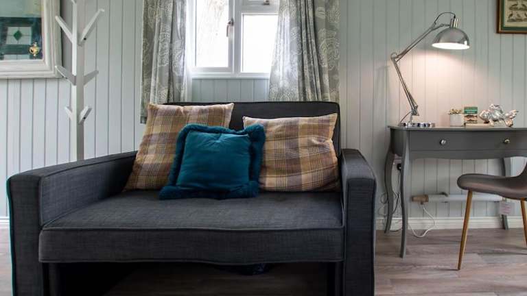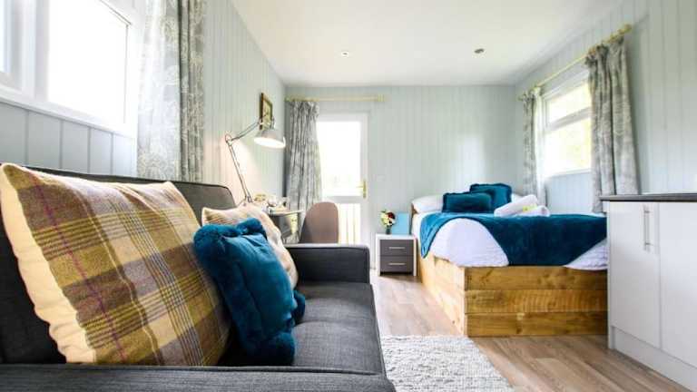 Die Lodge besitzt ein Schlafzimmer und ist mit einer voll ausgestatteten Küchenzeile versehen. Es sind Handtücher und Bettwäsche vorhanden.