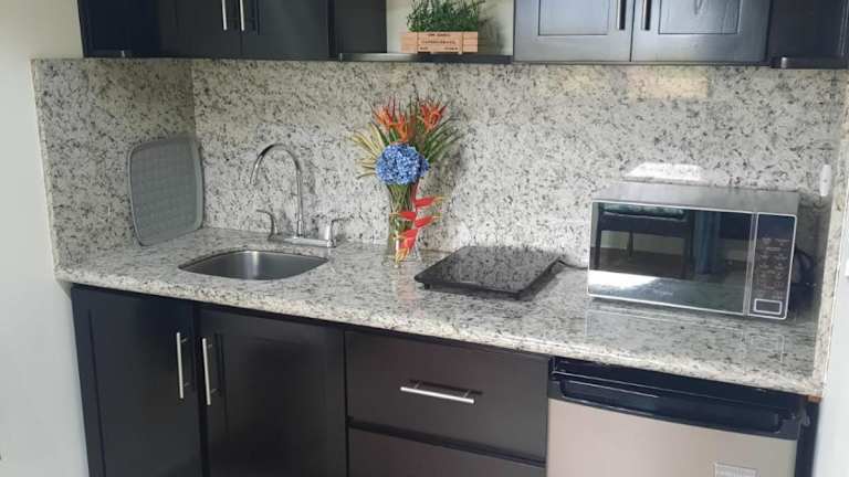 Die Küchenzeile der Unterkunft ist mit einem Kühlschrank, einer Mikrowelle, einer Herdplatte, einer Kaffeemaschine und einem Wasserkocher ausgestattet, was eine Selbstverpflegung ermöglicht. Weitere Informationen zu Verpflegungsmöglichkeiten sind nicht vorhanden.