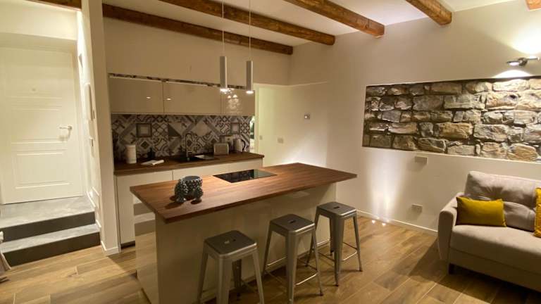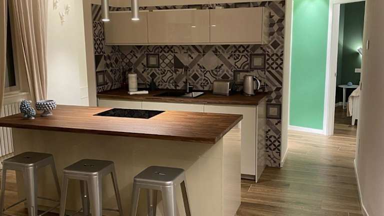 Die Ferienwohnung beinhaltet ein Schlafzimmer sowie eine voll ausgestattete Küche mit Kühlschrank und Geschirrspüler. Das Badezimmer ist mit einem Bidet und einer Dusche ausgestattet. Zudem werden Handtücher und Bettwäsche zur Verfügung gestellt.
