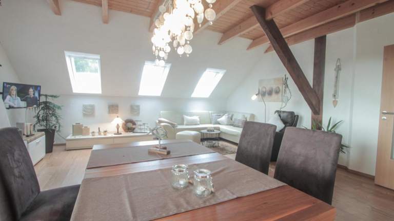 Die Ferienwohnung umfasst ein Schlafzimmer, ein Wohnzimmer mit Flachbild-TV und eine gut ausgestattete Küche mit Kühlschrank und Geschirrspüler. Es gibt ein Badezimmer mit Dusche. Handtücher und Bettwäsche werden zur Verfügung gestellt.