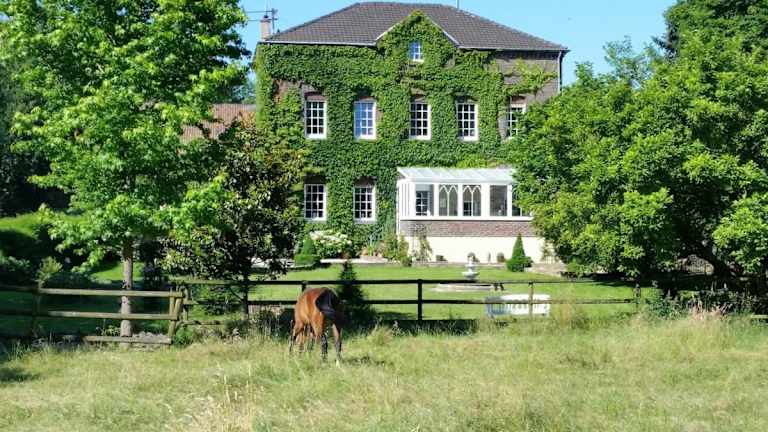 Das Landgut vor den Toren von Köln bietet eine gemütliche Ferienwohnung mit Gartenblick, die sich durch eine idyllische Lage auszeichnet. Die Unterkunft bietet Zugang zu einem Balkon sowie kostenlosen Privatparkplatz und kostenlosem Wifi. Sie wird von einem privaten Gastgeber geführt.