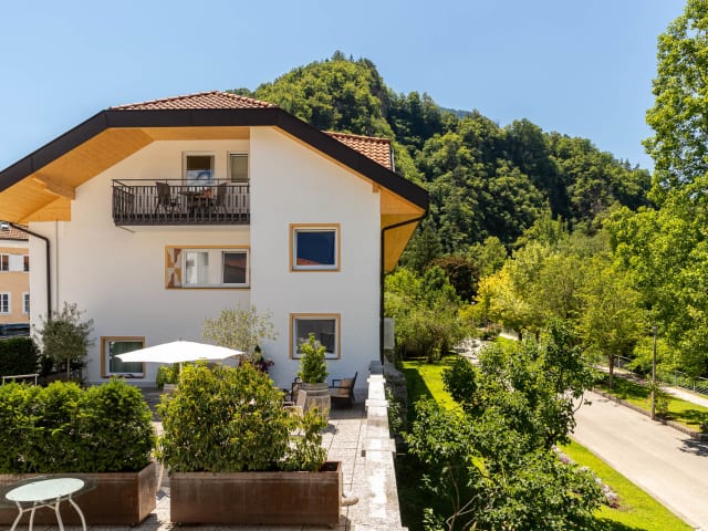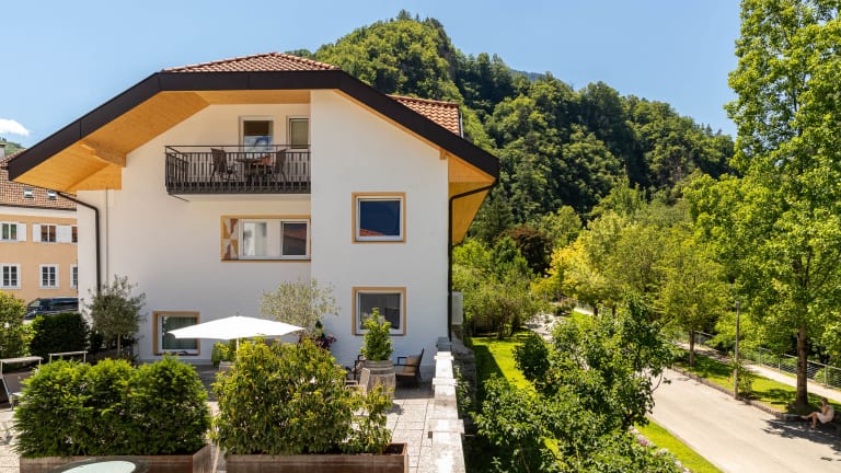 Landhaus-Feeling im Landhaus am Gries im Zentrum von Lana, direkt bei der Fussgängerzone. Hier kann das Auto mal die gesamte Urlaubszeit stehen bleiben. Im Landhaus am Gries in Lana findet Ihr 12 neue Ferienwohnungen. Die Wohnungen sind allesamt mit heimischen Naturhölzern eingerichtet und verfügen über einen Balkon. Ein Haus zum Wohlfühlen. Die 360° Sonnenterrasse steht für alle zur Verfügung, bietet Platz zum Sonnenbaden oder zusammenhocken. Lana ist idealer Ausgangspunkt für Wanderungen, Fahrradtouren, Motorradtouren oder einfach um Südtirol kennenzulernen. Supermarkt, Bäckerei, Caffés, Restaurants, Geschäfte und Boutiquen direkt vor dem Haus in der Fussgängerzone. Hinter dem Haus befindet sich die Gaulschlucht von Lana – Weltnaturerbe 2020. Vor allem schätzen unsere Gäste die Vielzahl an Restaurants, die man in nur wenigen Gehminuten erreicht. > W-LAN und Garage für die Fahrräder vorhanden > Haustiere sind erlaubt