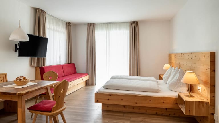 neue Ferienwohnung Typ 1 - Getrennten Wohn- und Schlafbereich - verfügt über ein gemütliches Schlafzimmer mit Doppelbett ganz in Zirbelholz eingerichtet, ein geräumiges Badezimmer mit Dusche, WC. Die helle Wohnküche besteht aus Küchenzeile mit gemütlicher Sitzecke, einer bequemen Couch und SAT-TV. neue Ferienwohnung Typ 2 - Wohn- und Schlafbereich in einem Raum - verfügt über ein gemütliches Schlafzimmer mit Doppelbett ganz in Zirbelholz eingerichtet, ein geräumiges Badezimmer mit Dusche, WC. Die helle Wohnküche besteht aus Küchenzeile mit gemütlicher Sitzecke, einer bequemen Couch und SAT-TV.