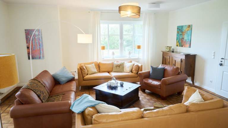 Das Ferienhaus verfügt über 6 Schlafzimmer, ein Wohnzimmer mit Flachbild-TV und eine gut ausgestattete Küche, die mit einem Kühlschrank und einem Geschirrspüler versehen ist. Es gibt 7 Badezimmer mit Badewanne oder Dusche. Zudem werden Handtücher und Bettwäsche zur Verfügung gestellt.