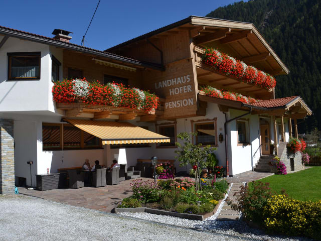Wir sind eine familiär geführte Frühstückspension mit wohlfühlzimmern. Man wünscht sich gewissen Luxus, Luxus bedeutet im Landhaus Hofer soviel wie Großzügigkeit bei den Zimmern, Qualität in der Ausstattung, Flexibilität in der Urlaubsgestaltung und viele Kleinigkeiten wie ausreichender Parkplatz, Schischuhtrockner, Mountainbikegarage,... Für Sonnenanbeter gibt es eine schöne, große und sonnige Terrasse und für unsere Kleinsten gibt es einen Spielplatz.