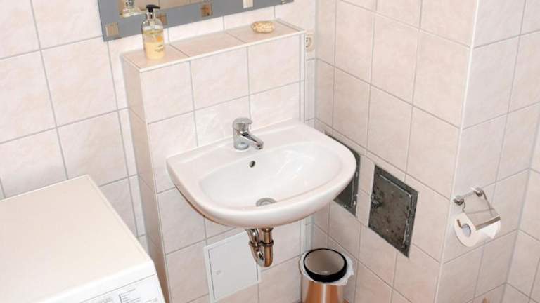 Die Küche der Unterkunft ist ausgestattet mit einem Kühlschrank, einem Geschirrspüler, einem Ofen sowie einer Kaffeemaschine. Hier können Sie sich selber versorgen und nach Belieben Ihre Mahlzeiten zubereiten.