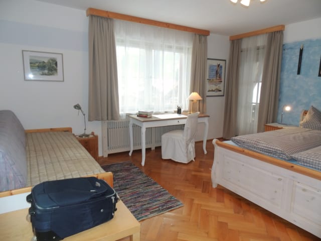 Platz und Komfort - freie Sicht ins Achental - Berge und Seen - Natur und Ökologie - Erholung und Genuss - dieses steht für unsere Ferienwohnung im Ortsteil Au von Unterwössen. Ein idealer Ausgangspunkt, um das Freizeitangebot des Chiemgaus zu erkunden. Sport und Natur sind hier kein Gegensatz, sondern bieten die Möglichkeit, sich hier zu erholen. Das „Landhaus in der Au“ liegt in ruhiger Hanglage erhöht über dem Ort. Von der Ferienwohnung aus haben Sie freien Rundumblick in das malerische Achental mit seinen Bergen. Um die Umwelt zu schonen, heizen wir mit Sonnen- und Erdwärme und achten auf eine ausgeglichene Energiebilanz. In Haus und Hof kann nicht geraucht werden. Das Mitbringen von Haustieren ist nicht möglich. Die Wohnung bietet ausreichend Platz für 4-5 Personen und überzeugt mit einer individuellen Ausstattung. Garten und Grillplatz warten auf ihre Nutzung. Kostenfreies WLAN und 2 Parkplätze stehen zur Verfügung.