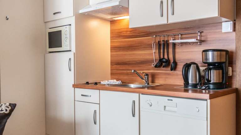 Jede Wohneinheit ist ausgestattet mit einer voll ausgestatteten Küche, einem Essbereich, einem Flachbild-TV mit Kabelkanälen sowie einem eigenen Badezimmer mit Dusche und Haartrockner. Zur Ausstattung gehören zudem ein Kühlschrank, ein Geschirrspüler, eine Mikrowelle, eine Kaffeemaschine und ein Wasserkocher.