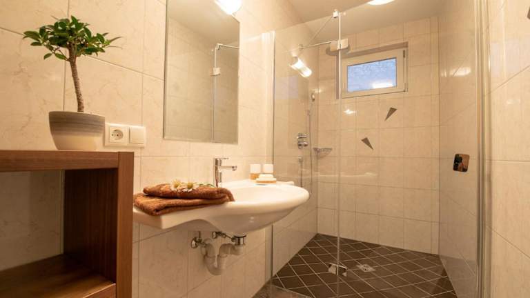 Die Zimmer im Landhaus Sonnblick sind mit einem Balkon ausgestattet und bieten Stadtblick sowie einen Sitzbereich. Des Weiteren stehen ein Satelliten-Flachbild-TV, eine voll ausgestattete Küche mit Kühlschrank, Geschirrspüler, Ofen, Herdplatte, Toaster, Kaffeemaschine und Wasserkocher zur Verfügung. Jedes Zimmer hat ein eigenes Badezimmer mit Dusche und Haartrockner. Die Unterkunft ist allergikerfreundlich und bietet auch Familienzimmer.