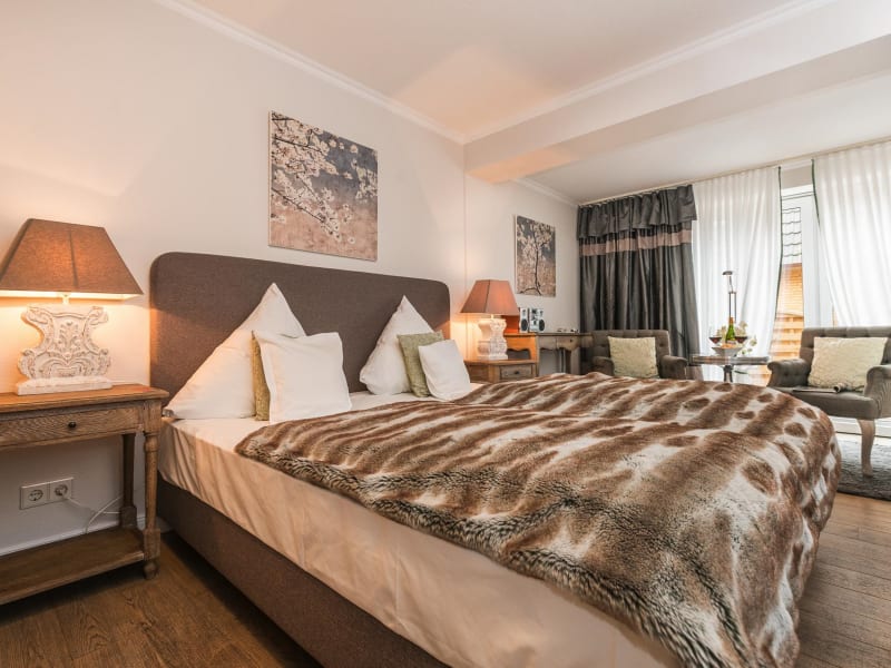 Allen Gästezimmern verfügen über ein eigenes Badezimmer mit Dusche oder Badewanne, Haartrockner und Toilettenartikel. Bademäntel und Saunatasche für den Wellnessbereich liegen bei Anreise bereit. In vielen Zimmern ist ein Kühlschrank, Wasserkocher und Nespressomaschine vorhanden. Die Ferienwohnungen und Appartements verfügen über einen Küche und einen Sitzbereich, teileweise mit Kamin. In einigen Zimmern ist auch ein Safe und ein Schreibtisch verfügbar. Zusätzlich zählen ein CD-Player / Radio oder Bluetooth Lautsprecher sowie ein Fernseher zum Inventar. In alle Zimmer und Appartements kann Sky-Sport empfangen werden. Ein reichhaltiges Frühstückbuffet ist für alle Hotelzimmer inklusive. Die Appartements und Ferienwohnungen können dieses auf Wunsch dazu buchen.