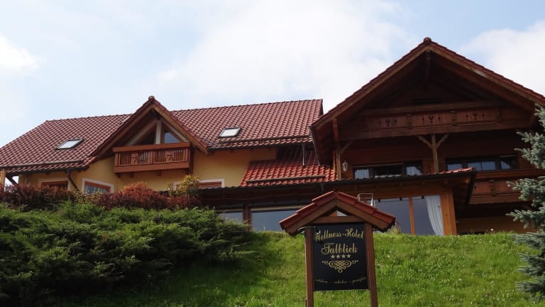 Das Boutique B&B- Landhaus Talblick liegt in Brotterode -Trusetal am Fuße des Rennsteigs im grünen Herzen des Thüringer Waldes und am Trusetal Wasserfall , im Ortsteil Elmenthal , sehr ruhig , am Hang mit den Blick auf das kleine bescheidene Dörfchen Elmenthal .