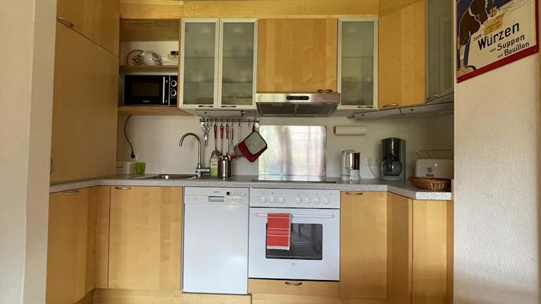 Die Ferienwohnung ist mit einem Wohnzimmer ausgestattet, das über einen TV verfügt. Die voll ausgestattete Küche beinhaltet einen Kühlschrank und einen Geschirrspüler. Zudem gibt es ein Badezimmer mit Haartrockner. Handtücher und Bettwäsche werden bereitgestellt.