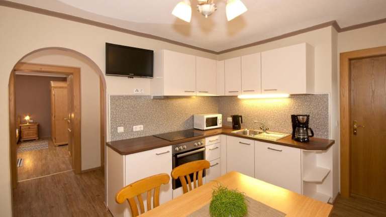 Die Unterkunft Landhaus Tyrol verfügt über einen Balkon mit Gartenblick. Jedes Zimmer beinhaltet einen Sitzbereich, einen Satelliten-TV, eine voll ausgestattete Küchenzeile mit Kühlschrank, Geschirrspüler, Ofen, Mikrowelle, Herdplatte, Kaffeemaschine sowie Wasserkocher. Ein eigenes Badezimmer mit Dusche ist ebenfalls vorhanden.