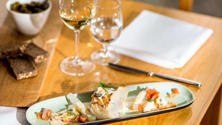 Gäste können sich morgens an einem regionalen Frühstücksbuffet im Wintergarten stärken. Das hoteleigene Restaurant bietet warme traditionelle und saisonale Gerichte an. Zudem steht eine Terrasse zur Verfügung, die zum Verweilen einlädt.