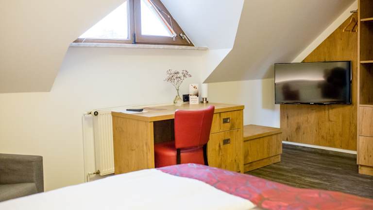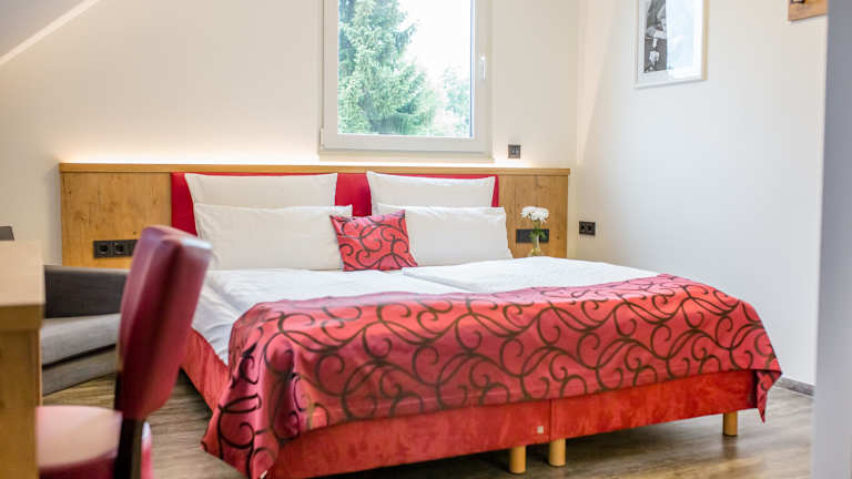 Die Zimmer sind modern eingerichtet und verfügen über ein eigenes Bad sowie Sat-TV. Sie bieten den Gästen eine angenehme Bequemlichkeit für einen erholsamen Aufenthalt.