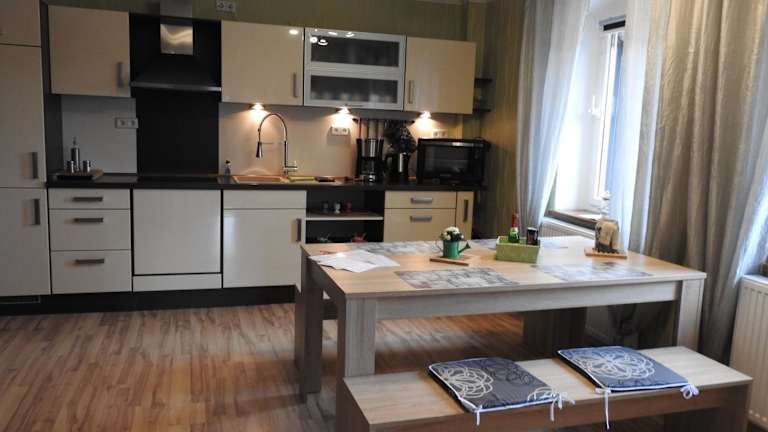 Die Ferienwohnung hat ein Schlafzimmer, ein Wohnzimmer mit Blu-ray-Player, einen Essbereich sowie eine Küche mit Kühlschrank, Geschirrspüler und Ofen. Zudem stehen ein Badezimmer mit Dusche sowie Handtücher und Bettwäsche zur Verfügung. Es gibt auch einen Nichtraucherraum und ein Minimarkt befindet sich vor Ort.