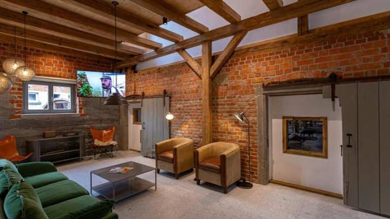 Die Unterkunft ist ein Ferienhaus, das Übernachtungsmöglichkeiten in einem großzügigen Rahmen bietet. Es verfügt über einen Balkon und einen eingezäunten Garten, sowie eine Sauna und einen Kamin für entspannende Stunden.