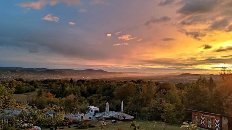 Die Unterkunft Langaland Glamping befindet sich in Mijlocenii-Bargaului, mit Stadtblick in Susenii Bîrgăului und einem schönen Garten sowie einer Terrasse.