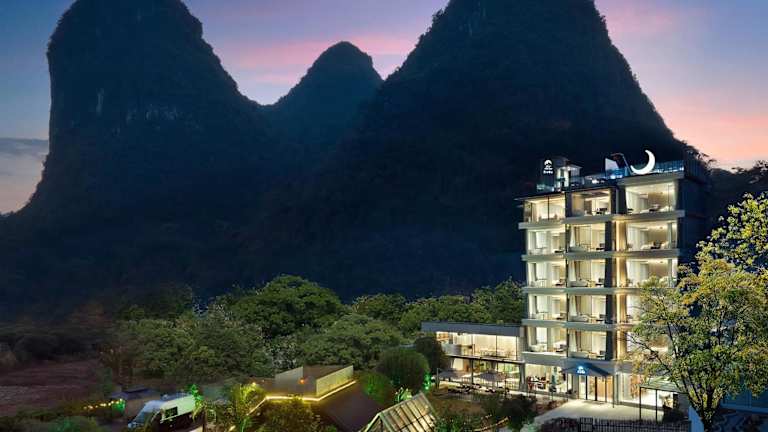 Die Unterkunft Lanshan Moon Resort befindet sich in Yangshuo, 4,6 km von der Darongshu Scenic Area entfernt. Die Umgebung bietet eine reizvolle Landschaft mit Bergblick und ist besonders geeignet für Aktivitäten wie Angeln und Velofahren. Der nächste Flughafen ist der Flughafen Guilin Liangjiang, welcher sich 81 km von der Unterkunft befindet.