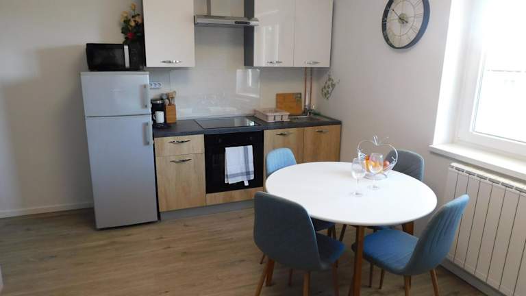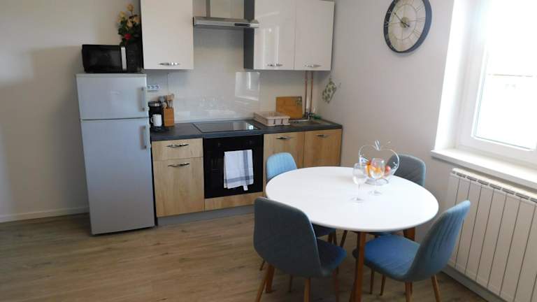 Die Ferienwohnung beinhaltet 2 Schlafzimmer, eine Küche mit Kühlschrank und Ofen, einen Flachbild-TV sowie einen gemütlichen Sitzbereich. Das Badezimmer ist mit einer Dusche ausgestattet. Zudem werden Handtücher und Bettwäsche bereitgestellt.