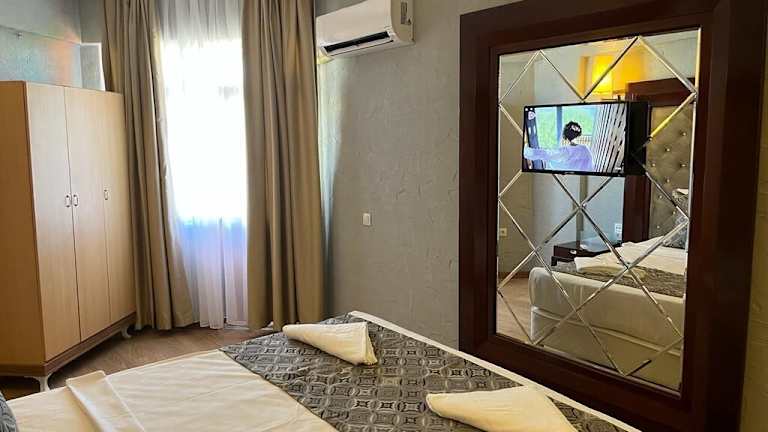 Die Zimmer der Lara Olympos Pansiyon sind klimatisiert und verfügen über eine Minibar, einen Kühlschrank, ein Telefon, Sat-TV und WLAN. Jedes Zimmer bietet zudem einen Safe und einige Zimmer bieten Stadtblick. Die Badezimmer sind mit Duschen ausgestattet und verfügen über Haartrockner sowie Kosmetikartikel. Es stehen Nichtraucherzimmer zur Verfügung.