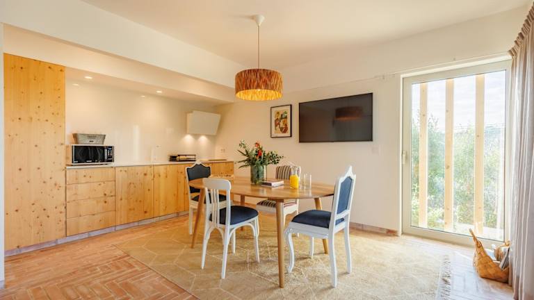 Die Wohneinheiten sind mit einer voll ausgestatteten Küche inkl. Esstisch, einem Flachbild-TV mit Kabelkanälen und einem eigenen Badezimmer mit Dusche, Haartrockner und Bademänteln ausgestattet. Ausserdem stehen Kühlschrank, Mikrowelle, Herdplatte, Kaffeemaschine und Wasserkocher zur Verfügung.
