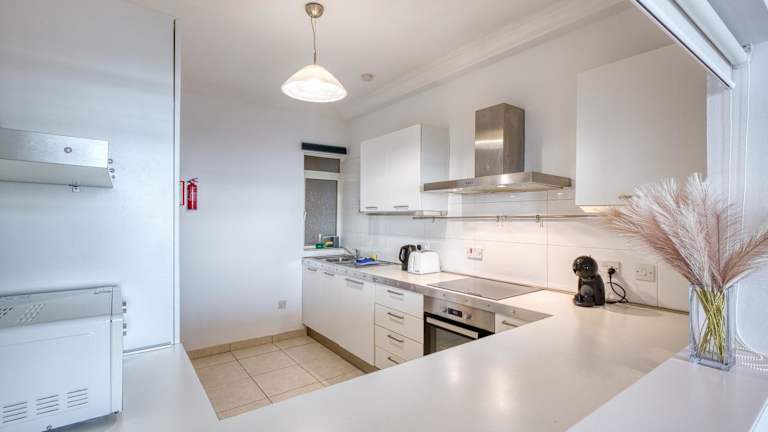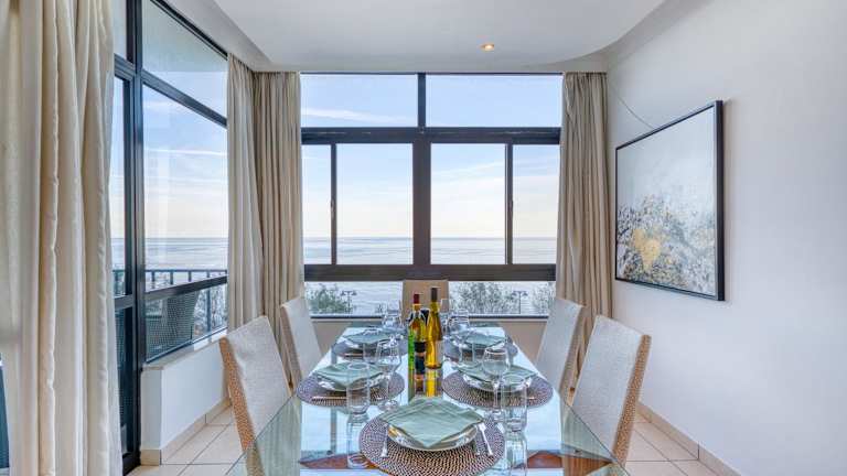 Die Ferienwohnung ist ausgestattet mit Bettwäsche, Handtüchern, einem Flachbild-TV, einem Essbereich, einer voll ausgestatteten Küche und einem Balkon mit Meerblick.