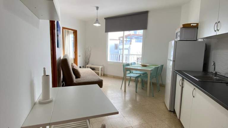 Jedes Apartment im Las Brisas Mogan verfügt über ein Zweibettzimmer, einen Sitzbereich mit Sat-TV, ein Schlafsofa sowie eine Küchenzeile. Zudem ist ein eigenes Bad vorhanden und die Nutzung von WLAN ist kostenfrei.